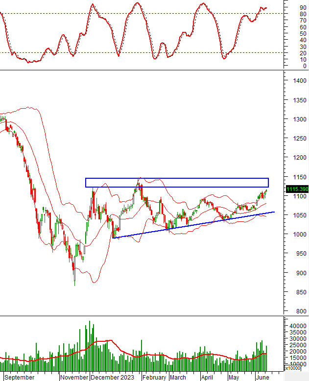 Mục tiêu mà chỉ số này đang hướng tới là vùng 1,120-1,145 điểm (tương đương đỉnh cũ tháng 12/2022 và 01/2023) nên dự kiến rung lắc sẽ hiện diện tại đây.