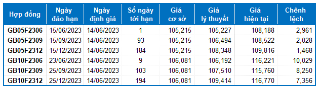 Dựa trên phương pháp định giá hợp lý với thời điểm khởi đầu ngày 14/06/2023, khung giá hợp lý của các hợp đồng tương lai đang được giao dịch trên thị trường được thể hiện như sau:
