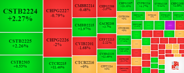 Khối lượng giao dịch toàn thị trường trong phiên 14/06 đạt 16.68 triệu đơn vị, tăng 29.13%; giá trị giao dịch đạt 14.44 tỷ đồng, giảm 0.12% so với phiên 13/06. Trong đó, CVNM2212 là mã dẫn đầu thị trường về khối lượng, với 2,139,300 CW; CSTB2303 dẫn đầu về giá trị giao dịch với 1.8 tỷ đồng.